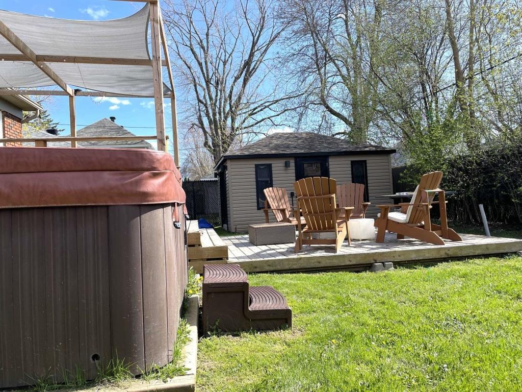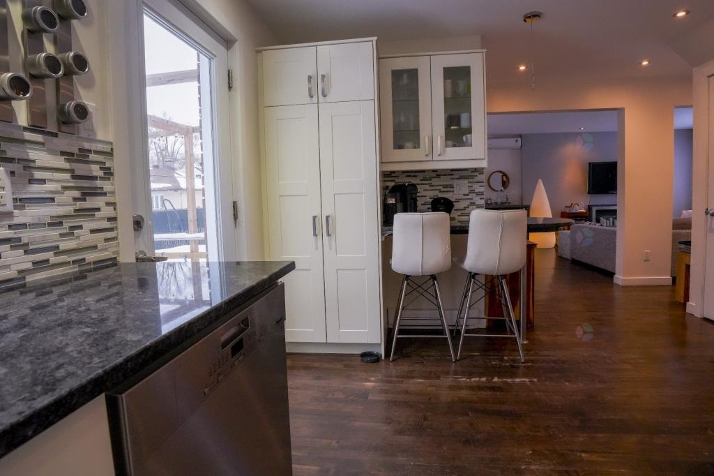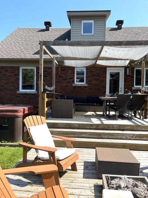 Emplacement! Dorval Sud à 300 mètres du lac Saint-Louis. Maison ensoleillée avec charme rénovée au fil des ans comprenant 4 chambres(2 au dernier étage,1 au rez-de-chaussée et 1 au sous-sol) cuisine fonctionnelle avec comptoirs en granit et îlot d'angle pour 2 et porte donnant sur une grande terrasse double en bois et un grand cabanon, belle cour arrière clôturée avec exposition ouest. Sous-sol fini avec chambre, bureau, salle de bain complète avec coin buanderie, salle familiale et des espaces de rangement. Niché près d'écoles, autobus, train, magasins, l'aéroport, centre civique, bibliothèque, complexe sportif, accès facile à l'autoroute 20.